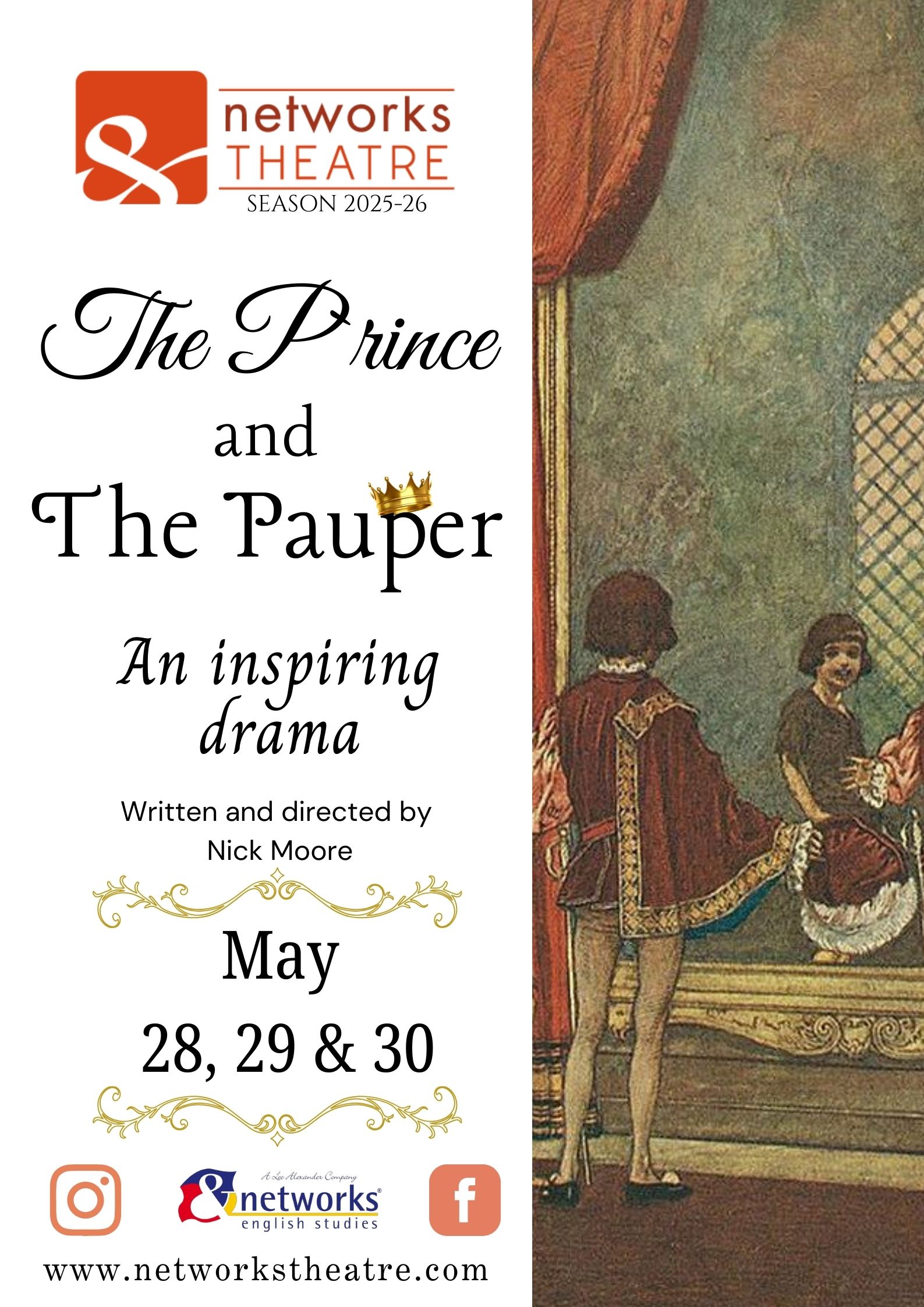 Last but not least, a show that hasn’t graced our stage in 21 years: The Prince and The Pauper! When a young prince meets a poor boy who looks exactly like him, they decide to swap places and see what life is like on the other side. Adapted from Mark Twain’s original novel, this drama explores identity, justice, and empathy in a world where appearances can be deceiving. Performances at the end of May.